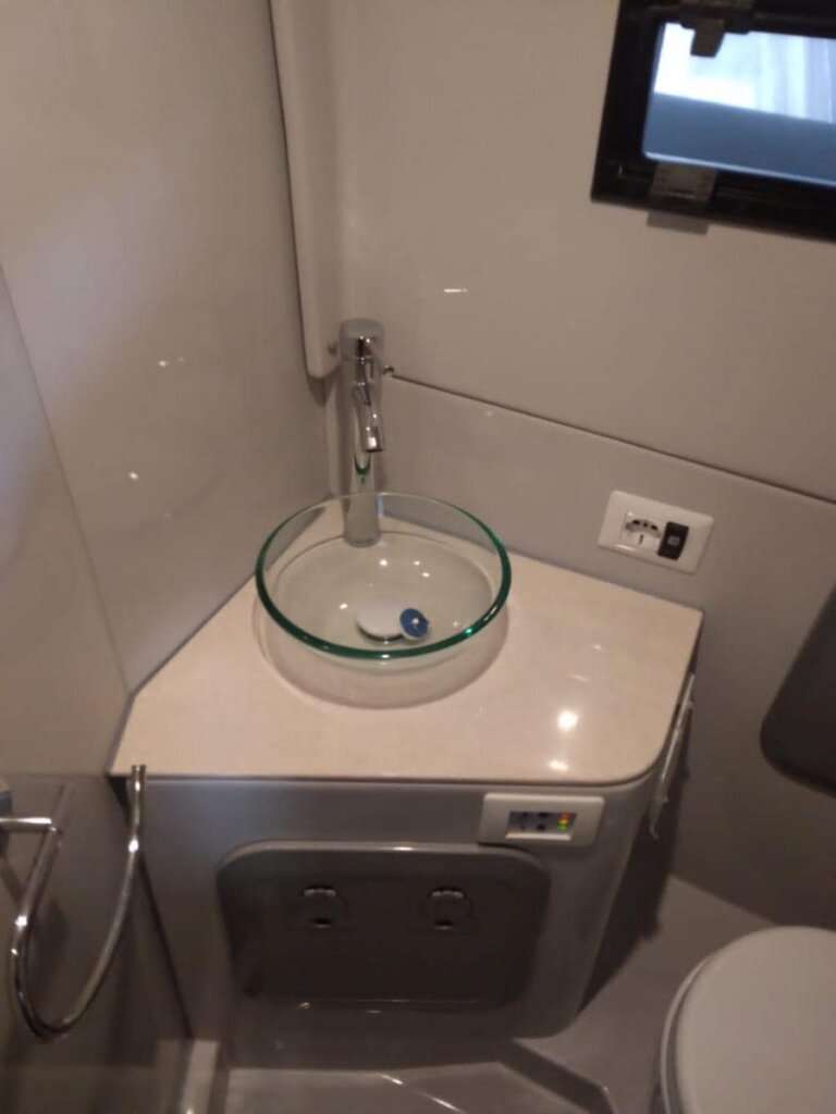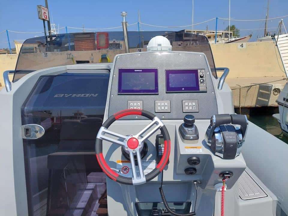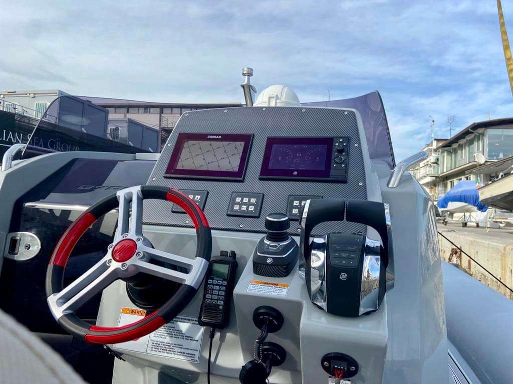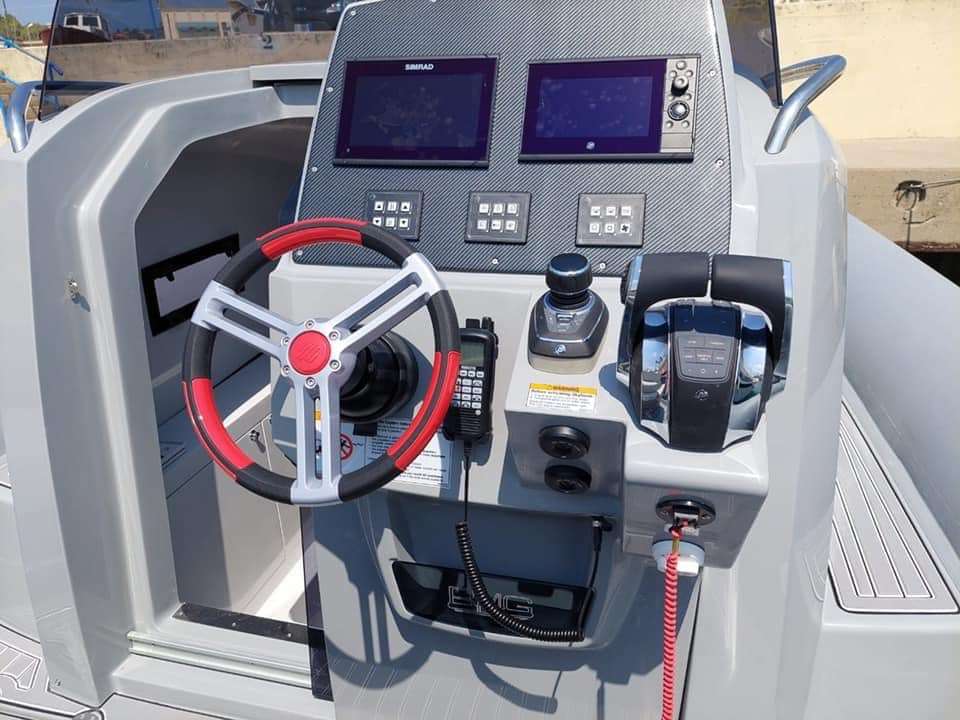 La cabina di prua offre due posti letto e un bagno, mentre nell’ampio cruscotto sono installati il Vessel View da 7 pollici e il GPS Simrad da 9 pollici per navigazione precisa.