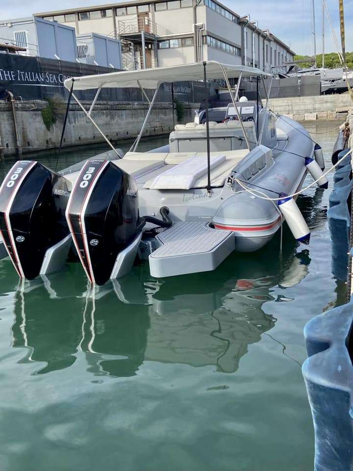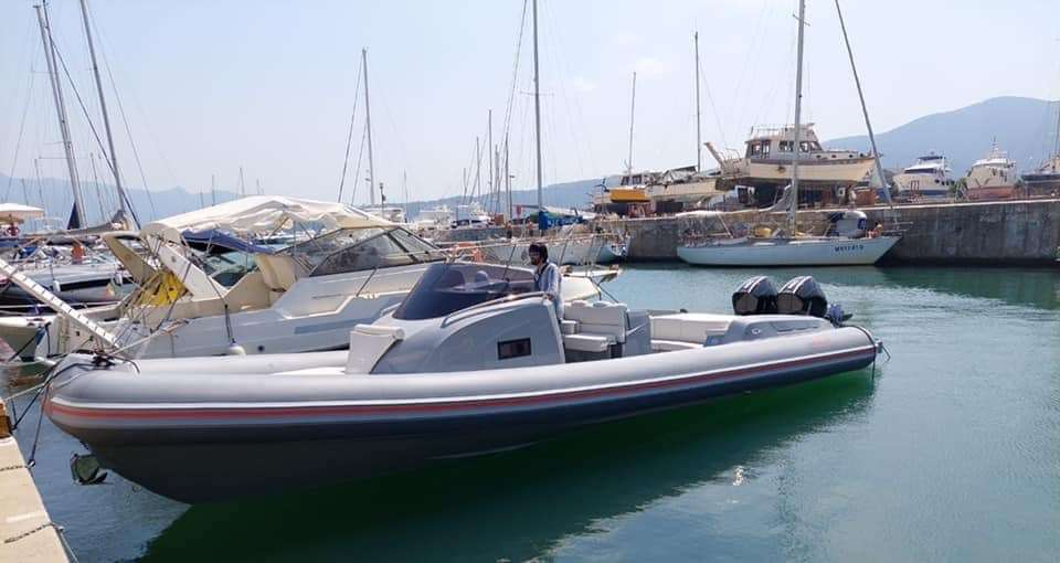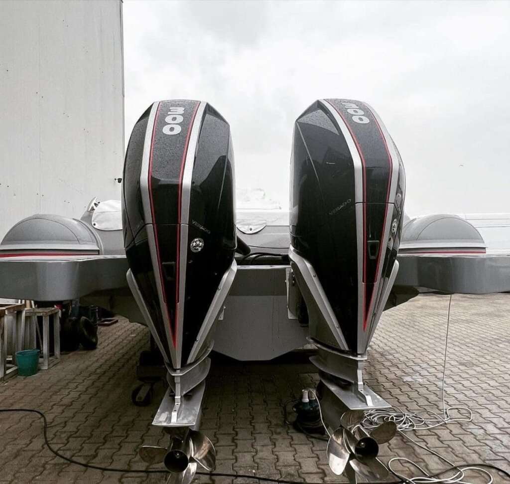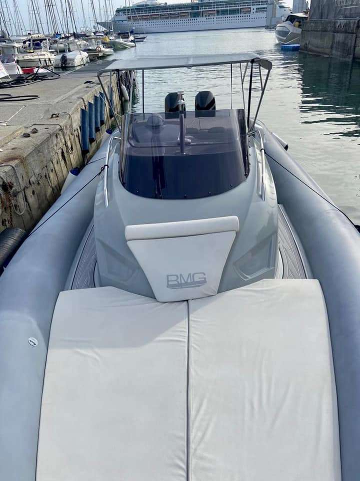 Il gommone BMG di 9.99 mt (con bracket che arriva a 11.70 mt) è il massimo della nautica, progettato per offrire prestazioni straordinarie. Equipaggiato con 2 motori Verado da 300 hp con JPO Mercury, garantisce potenza e stabilità.