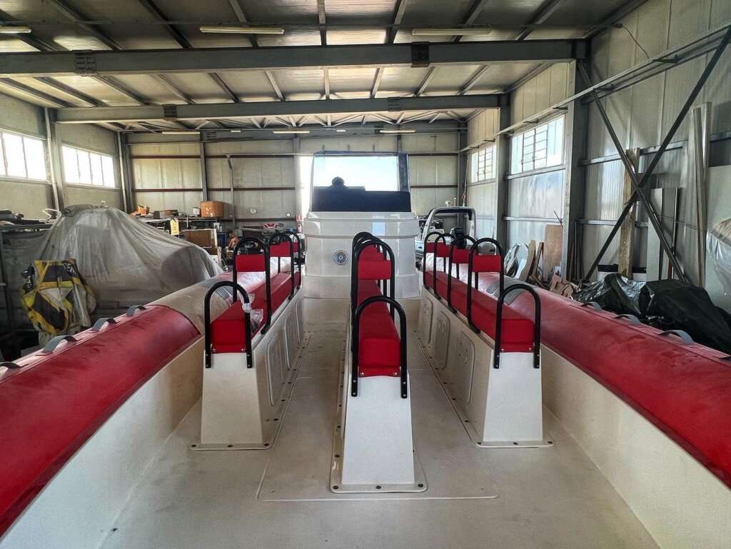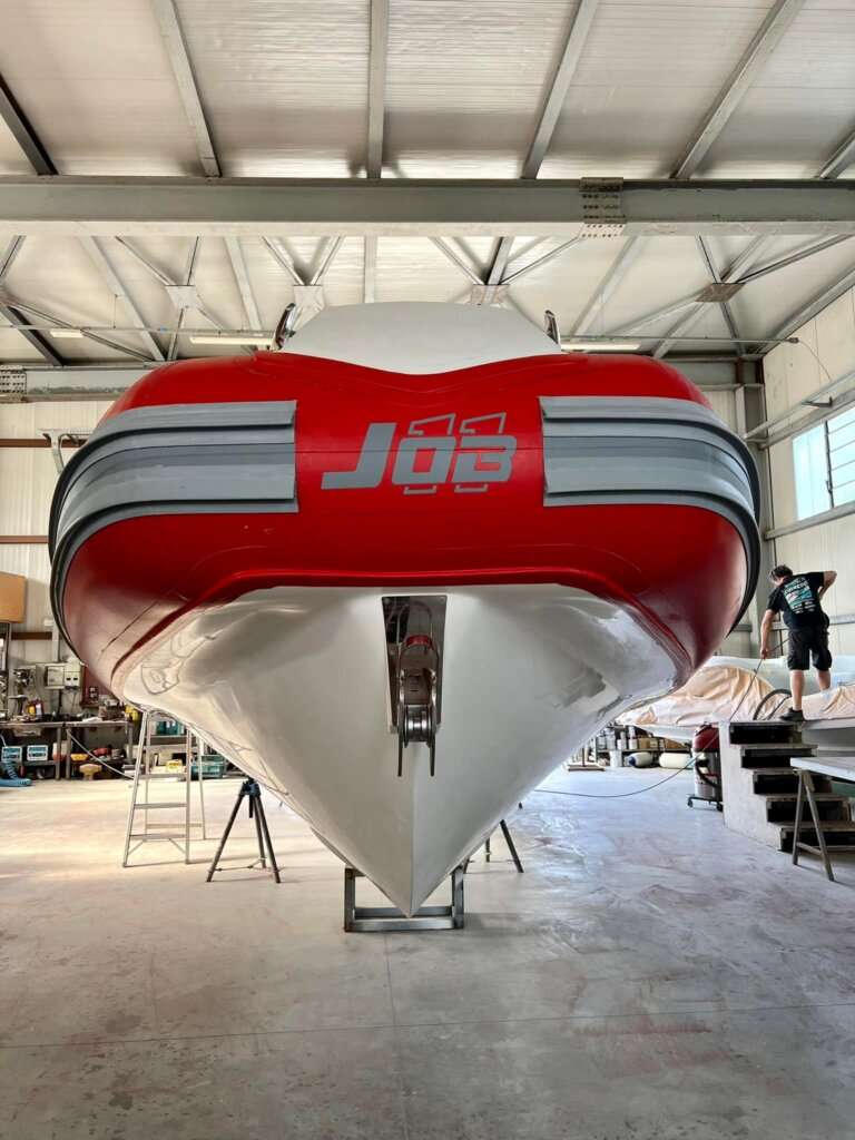 Il JOB 11 è un gommone altamente personalizzabile, ideale per attività di diving, trasporto merci o persone, e anche come bar galleggiante. Con una lunghezza di 9,99 metri, larghezza di 3,60 metri e una capacità di 15 persone, è dotato di due serbatoi da 450 litri e una motorizzazione che arriva fino a 700 cavalli, con motori Suzuki da 350 cavalli. Dispone di un gambale XXL, salpa ancora da 100 watt, e opzioni di motorizzazione fuoribordo e entrobordo. È omologato B+C o B, disponibile anche nella versione nera con consolle del primo modello.